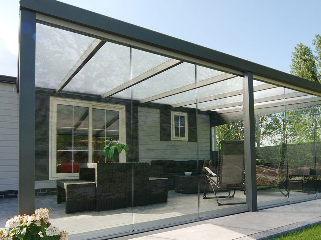 Waar een terrasoverkapping meestal alleen uit een dak bestaat – ideaal om langer van de zomer te genieten – gaat een tuinkamer een stap verder. Naast een dak, bijvoorbeeld van glas, wordt de ruimte voorzien van schuifbare glazen panelen. Dit maakt het mogelijk om de ruimte volledig naar wens aan te passen aan het weer en uw comfort.
